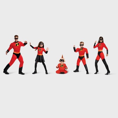Straight from the feature film the incredibles this baby costume is a red stretch jumpsuit with the i emblem on the chestcozy and cute this soft jumpsuit has black stripes lining the wrists ankles and collar. Snaps on the inner legs make diaper changes easy so this little super.